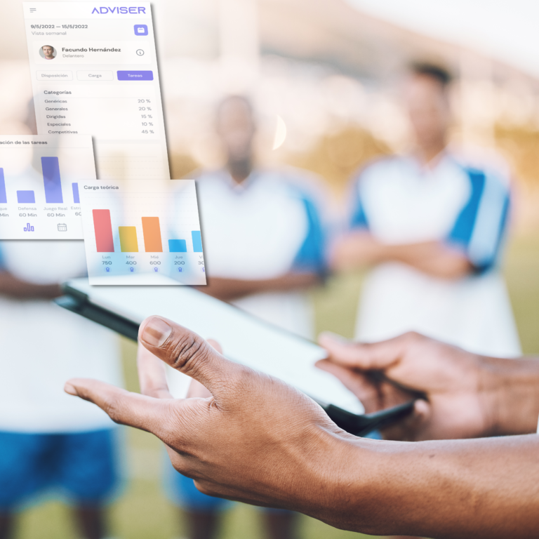 ADVISER emplea un modelo predictivo para determinar el Nivel de Especificidad (NE) de cada tarea, recopilando y procesando información para identificar parámetros específicos. Se analizan datos individuales y colectivos, y esto permite identificar cómo cada jugador responde a las cargas de entrenamiento, permitiendo ajustar las sesiones. Su valor principal es transformar grandes volúmenes de datos objetivos y subjetivos en directrices prácticas, facilitando un mejor control de la carga, una gestión eficiente y una optimización del rendimiento sin comprometer la salud de los jugadores.